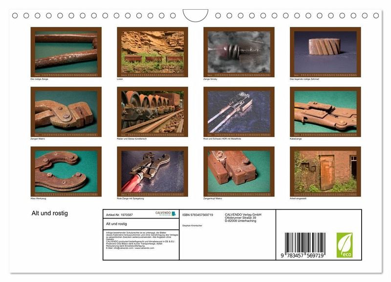 QUALITÄT - Hochwertiger Fotokalender mit 12 wunderschönen Motiven auf lichtbeständigem Bilderdruckpapier, robuste Spiralbindung mit Aufhängebügel.NACHHALTIG - deutliche Abfallreduzierung durch bedarfsgerechte Einzelstückfertigung, umweltfreundliches FSC-zertifiziertes Papier, Produktion in Deutschland, klimabewusste Logistik.PERFEKTES GESCHENK - Kalender für Freunde und Familie, für Kinder und Erwachsene, jung und alt, zu Weihnachten, Geburtstag oder zwischendurch.VIELFALT - Bildkalender in verschiedenen Formaten, z.B. DIN A5, DIN A4, DIN A3 sowie DIN A2. Ob Naturmotiv, Gemälde oder Fotos, ideal für ein persönliches Wohlfühlambiente.Altes wird durch den Zahn der Zeit rostig und schön für die Augen von Autor(in): Stephan Krentscher