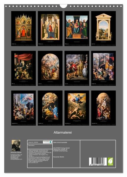 QUALITÄT - Hochwertiger Fotokalender mit 12 wunderschönen Motiven auf lichtbeständigem Bilderdruckpapier, robuste Spiralbindung mit Aufhängebügel.NACHHALTIG - deutliche Abfallreduzierung durch bedarfsgerechte Einzelstückfertigung, umweltfreundliches FSC-zertifiziertes Papier, Produktion in Deutschland, klimabewusste Logistik.PERFEKTES GESCHENK - Kalender für Freunde und Familie, für Kinder und Erwachsene, jung und alt, zu Weihnachten, Geburtstag oder zwischendurch.VIELFALT - Bildkalender in verschiedenen Formaten, z.B. DIN A5, DIN A4, DIN A3 sowie DIN A2. Ob Naturmotiv, Gemälde oder Fotos, ideal für ein persönliches Wohlfühlambiente.Meisterwerke der Altarmalerei von der Gotik bis in den Barock von Autor(in): Alexander Bartek