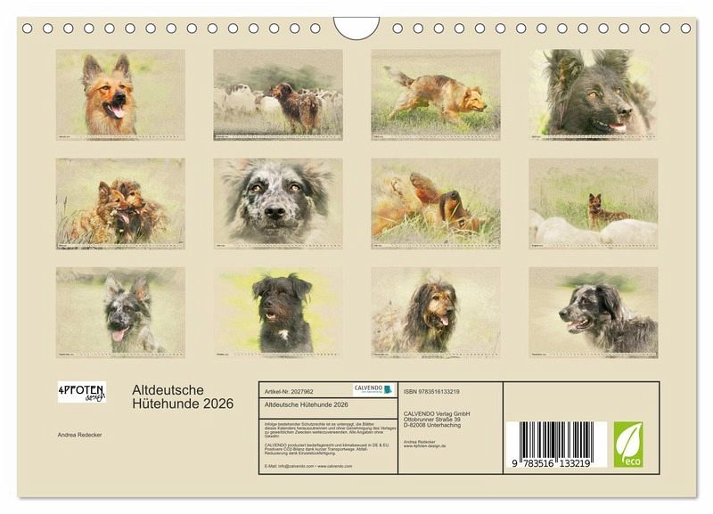 QUALITÄT - Hochwertiger Fotokalender mit 12 wunderschönen Motiven auf lichtbeständigem Bilderdruckpapier, robuste Spiralbindung mit Aufhängebügel.NACHHALTIG - deutliche Abfallreduzierung durch bedarfsgerechte Einzelstückfertigung, umweltfreundliches FSC-zertifiziertes Papier, Produktion in Deutschland, klimabewusste Logistik.PERFEKTES GESCHENK - Kalender für Freunde und Familie, für Kinder und Erwachsene, jung und alt, zu Weihnachten, Geburtstag oder zwischendurch.VIELFALT - Bildkalender in verschiedenen Formaten, z.B. DIN A5, DIN A4, DIN A3 sowie DIN A2. Ob Naturmotiv, Gemälde oder Fotos, ideal für ein persönliches Wohlfühlambiente.Altdeutsche Hütehunde im kunstvollen Aquarell-Stil. Jedes Monatsmotiv gleicht einem kleinen Kunstwerk von Autor(in): Andrea Redecker