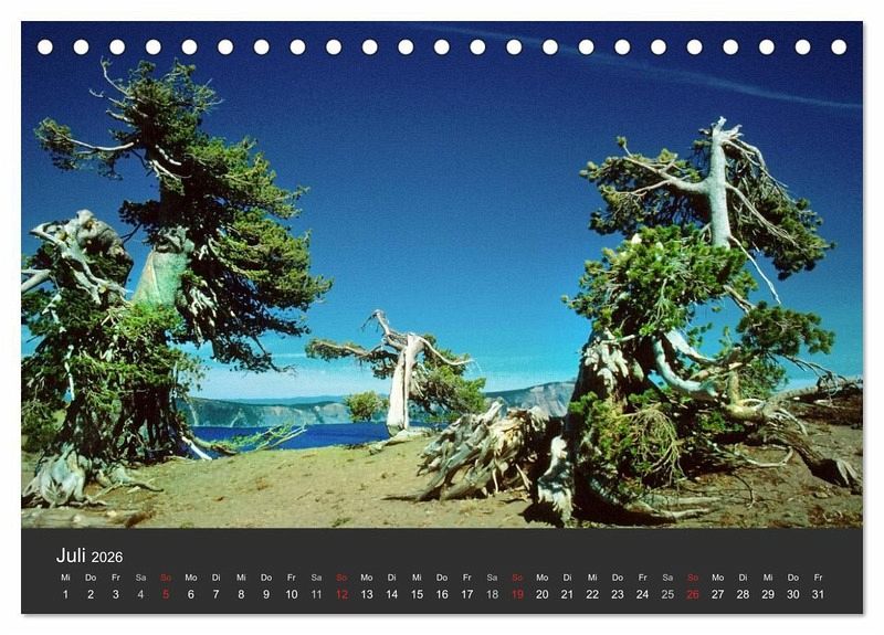 Juli: Borstenzapfenkiefer 2000Jahre alt, am Crater Lake, USA