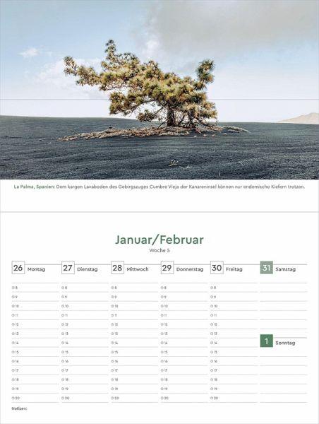 Dieser KUNTH Tischkalender "Alte Bäume" 2026 führt zu 53 traumhaften Zielen in Bild und Text. Wöchentlich gibt es Neues zu entdecken, und der Terminplaner erleichtert die Organisation des Alltags.