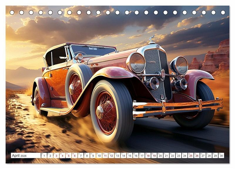 Sie lieben Oldtimer, aber möchten auch etwas Neues und Außergewöhnliches sehen? Dann ist dieser Kalender genau das Richtige für Sie! Jeden Monat erwartet Sie ein atemberaubendes Bild von einem coolen schnellen Oldtimer, der mit künstlicher Intelligenz neu gestaltet wurde. Bewundern Sie die glänzenden Karosserien, die raffinierten Details und die dynamischen Farben dieser einzigartigen Fahrzeuge. Dieser Kalender ist ein echter Hingucker und ein tolles Geschenk für alle Auto-Fans.