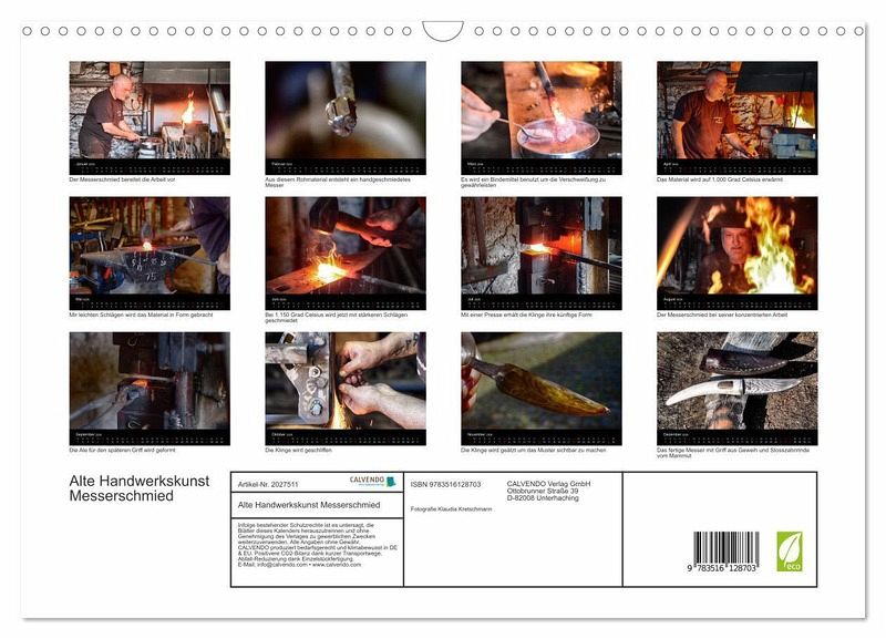 QUALITÄT - Hochwertiger Fotokalender mit 12 wunderschönen Motiven auf lichtbeständigem Bilderdruckpapier, robuste Spiralbindung mit Aufhängebügel.NACHHALTIG - deutliche Abfallreduzierung durch bedarfsgerechte Einzelstückfertigung, umweltfreundliches FSC-zertifiziertes Papier, Produktion in Deutschland, klimabewusste Logistik.PERFEKTES GESCHENK - Kalender für Freunde und Familie, für Kinder und Erwachsene, jung und alt, zu Weihnachten, Geburtstag oder zwischendurch.VIELFALT - Bildkalender in verschiedenen Formaten, z.B. DIN A5, DIN A4, DIN A3 sowie DIN A2. Ob Naturmotiv, Gemälde oder Fotos, ideal für ein persönliches Wohlfühlambiente.Der Messerschmied ist ein alter und ehrwürdiger handwerklicher Beruf mit langer Tradition von Autor(in): Klaudia Kretschmann