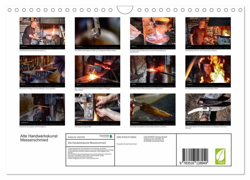 QUALITÄT - Hochwertiger Fotokalender mit 12 wunderschönen Motiven auf lichtbeständigem Bilderdruckpapier, robuste Spiralbindung mit Aufhängebügel.NACHHALTIG - deutliche Abfallreduzierung durch bedarfsgerechte Einzelstückfertigung, umweltfreundliches FSC-zertifiziertes Papier, Produktion in Deutschland, klimabewusste Logistik.PERFEKTES GESCHENK - Kalender für Freunde und Familie, für Kinder und Erwachsene, jung und alt, zu Weihnachten, Geburtstag oder zwischendurch.VIELFALT - Bildkalender in verschiedenen Formaten, z.B. DIN A5, DIN A4, DIN A3 sowie DIN A2. Ob Naturmotiv, Gemälde oder Fotos, ideal für ein persönliches Wohlfühlambiente.Der Messerschmied ist ein alter und ehrwürdiger handwerklicher Beruf mit langer Tradition von Autor(in): Klaudia Kretschmann