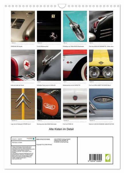 QUALITÄT - Hochwertiger Fotokalender mit 12 wunderschönen Motiven auf lichtbeständigem Bilderdruckpapier, robuste Spiralbindung mit Aufhängebügel.NACHHALTIG - deutliche Abfallreduzierung durch bedarfsgerechte Einzelstückfertigung, umweltfreundliches FSC-zertifiziertes Papier, Produktion in Deutschland, klimabewusste Logistik.PERFEKTES GESCHENK - Kalender für Freunde und Familie, für Kinder und Erwachsene, jung und alt, zu Weihnachten, Geburtstag oder zwischendurch.VIELFALT - Bildkalender in verschiedenen Formaten, z.B. DIN A5, DIN A4, DIN A3 sowie DIN A2. Ob Naturmotiv, Gemälde oder Fotos, ideal für ein persönliches Wohlfühlambiente.Oldtimer im Deatail - vom kleinen Seitenfenster am Lincoln Diamond Jubilee Edition bis zur Flying Lady am Cadillac von Autor(in): Karl-Heinz Klinsky