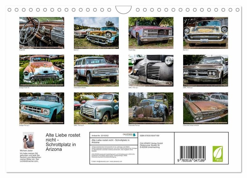 QUALITÄT - Hochwertiger Fotokalender mit 12 wunderschönen Motiven auf lichtbeständigem Bilderdruckpapier, robuste Spiralbindung mit Aufhängebügel.NACHHALTIG - deutliche Abfallreduzierung durch bedarfsgerechte Einzelstückfertigung, umweltfreundliches FSC-zertifiziertes Papier, Produktion in Deutschland, klimabewusste Logistik.PERFEKTES GESCHENK - Kalender für Freunde und Familie, für Kinder und Erwachsene, jung und alt, zu Weihnachten, Geburtstag oder zwischendurch.VIELFALT - Bildkalender in verschiedenen Formaten, z.B. DIN A5, DIN A4, DIN A3 sowie DIN A2. Ob Naturmotiv, Gemälde oder Fotos, ideal für ein persönliches Wohlfühlambiente.Der rotbraune Charme dieser verblassten automobilen Träume, aus Chrom und Stahl. von Autor(in): Michael Jaster
