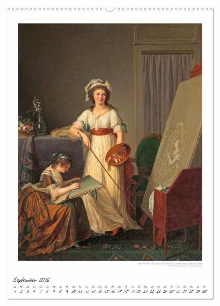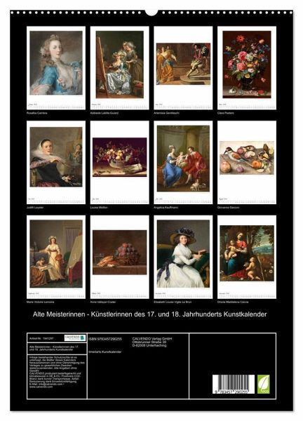 Carriera, Labille-Guiard, Gentileschi, Leyster, Kauffmann, Vigée Le Brun: erfolgreiche Malerinnen des 17. Und 18. Jahrhunderts. Der Kalender präsentiert eine Auswahl von Werken bekannter, vergessener und wiederentdeckter Alter Meisterinnen.