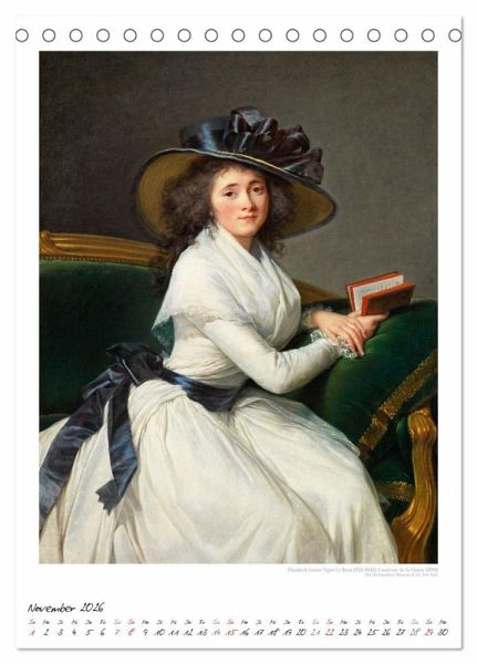 Carriera, Labille-Guiard, Gentileschi, Leyster, Kauffmann, Vigée Le Brun: erfolgreiche Malerinnen des 17. Und 18. Jahrhunderts. Der Kalender präsentiert eine Auswahl von Werken bekannter, vergessener und wiederentdeckter Alter Meisterinnen.