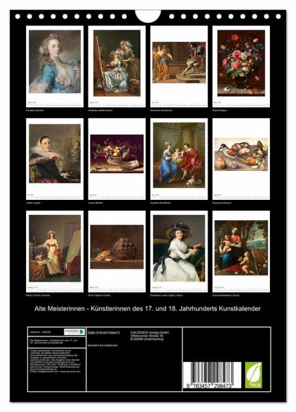 Carriera, Labille-Guiard, Gentileschi, Leyster, Kauffmann, Vigée Le Brun: erfolgreiche Malerinnen des 17. Und 18. Jahrhunderts. Der Kalender präsentiert eine Auswahl von Werken bekannter, vergessener und wiederentdeckter Alter Meisterinnen.