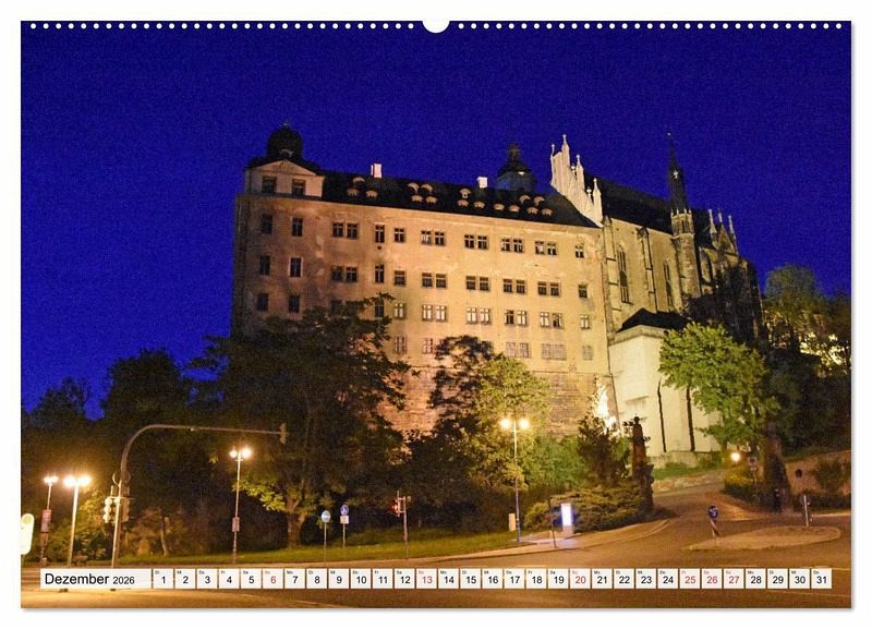 Dezember: Das prächtige Residenzschloss mit der Schlosskirche am Abend