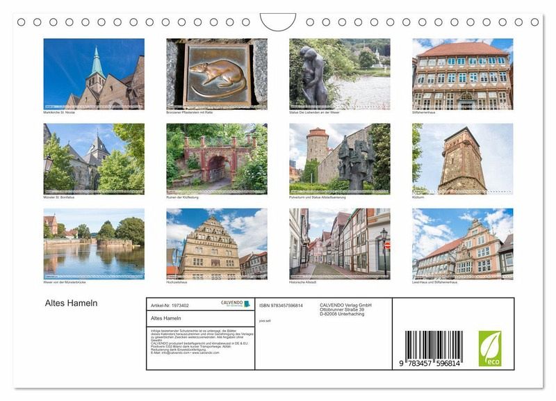 Der Kalender nimmt Sie mit auf einen Rundgang durch die historische Innenstadt von Hameln und zeigt Ihnen eine Auswahl der schönsten und prachtvollsten Bauten und Denkmäler. Eine Zeitreise von beeindruckenden Kirchen, eindrucksvollen Gebäuden und Persönlichkeiten.