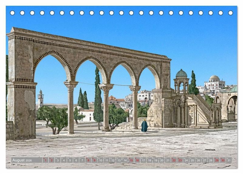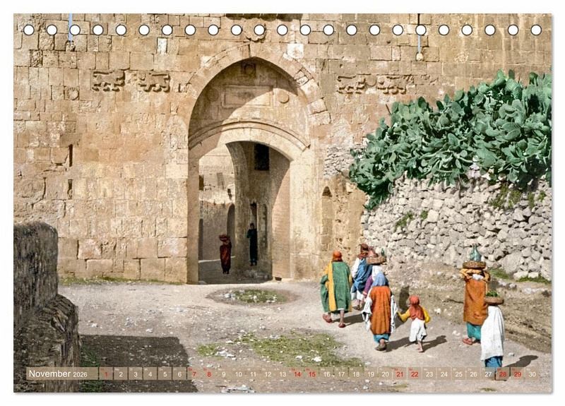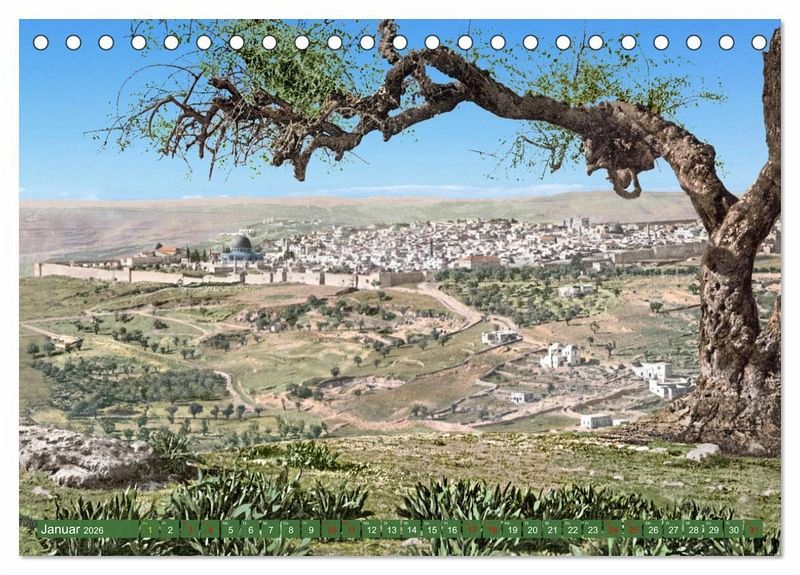Jerusalem - Wohl kaum ein Ort hat eine so dramatische und wechselvolle Geschichte erlebt wie Jerusalem. Die "Heilige Stadt", auch als Ort von Jesu Wirkens, ist ein Kreuzpunkt der drei abrahamitischen Religionen Judentum, Christentum und Islam. Unterschiedliche Glaubenswelten treffen hier aufeinander. Von gewaltigen Mauern umgeben und durch Tore gesichert beeindruckt die Architektur. Diese farblich restaurierten und nachkolorierten Fotografien sollen einen besonderen Einblick in den Alltag der Menschen und bekannte Orte um das Jahr 1900 geben, auch wenn es in diesem inzwischen zweiten Kalender nur eine kleine Auswahl an Örtlichkeiten ist. Aber nie war diese alte Zeit so lebendig. Eine Zeitreise in Bildern. Dieser qualitativ hochwertige Kalender gehört zur exklusiven CALVENDO Gold-Edition.