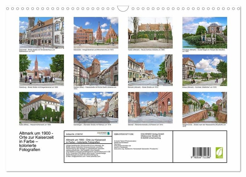 QUALITÄT - Hochwertiger Fotokalender mit 12 wunderschönen Motiven auf lichtbeständigem Bilderdruckpapier, robuste Spiralbindung mit Aufhängebügel.NACHHALTIG - deutliche Abfallreduzierung durch bedarfsgerechte Einzelstückfertigung, umweltfreundliches FSC-zertifiziertes Papier, Produktion in Deutschland, klimabewusste Logistik.PERFEKTES GESCHENK - Kalender für Freunde und Familie, für Kinder und Erwachsene, jung und alt, zu Weihnachten, Geburtstag oder zwischendurch.VIELFALT - Bildkalender in verschiedenen Formaten, z.B. DIN A5, DIN A4, DIN A3 sowie DIN A2. Ob Naturmotiv, Gemälde oder Fotos, ideal für ein persönliches Wohlfühlambiente.Orte in der Altmark im Norden Sachsen-Anhalts um das Jahr 1900 zur Kaiserzeit erwachen in lebendigen Farben zu neuem Leben. von Autor(in): André Tetsch