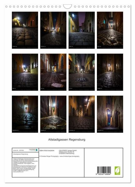 QUALITÄT - Hochwertiger Fotokalender mit 12 wunderschönen Motiven auf lichtbeständigem Bilderdruckpapier, robuste Spiralbindung mit Aufhängebügel.NACHHALTIG - deutliche Abfallreduzierung durch bedarfsgerechte Einzelstückfertigung, umweltfreundliches FSC-zertifiziertes Papier, Produktion in Deutschland, klimabewusste Logistik.PERFEKTES GESCHENK - Kalender für Freunde und Familie, für Kinder und Erwachsene, jung und alt, zu Weihnachten, Geburtstag oder zwischendurch.VIELFALT - Bildkalender in verschiedenen Formaten, z.B. DIN A5, DIN A4, DIN A3 sowie DIN A2. Ob Naturmotiv, Gemälde oder Fotos, ideal für ein persönliches Wohlfühlambiente.Faszinierende Gassen der Regensburger Altstadt von Autor(in): Christian Ringer www.christianringer.com