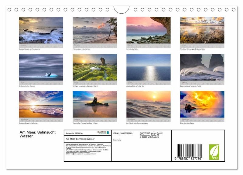 QUALITÄT - Hochwertiger Fotokalender mit 12 wunderschönen Motiven auf lichtbeständigem Bilderdruckpapier, robuste Spiralbindung mit Aufhängebügel.NACHHALTIG - deutliche Abfallreduzierung durch bedarfsgerechte Einzelstückfertigung, umweltfreundliches FSC-zertifiziertes Papier, Produktion in Deutschland, klimabewusste Logistik.PERFEKTES GESCHENK - Kalender für Freunde und Familie, für Kinder und Erwachsene, jung und alt, zu Weihnachten, Geburtstag oderzwischendurch.VIELFALT - Bildkalender in verschiedenen Formaten, z.B. DIN A5, DIN A4, DIN A3 sowie DIN A2. Ob Naturmotiv, Gemälde oder Fotos, ideal für ein persönliches Wohlfühlambiente.Das Meer macht Menschen glücklich! von Autor(in): Rose Hurley