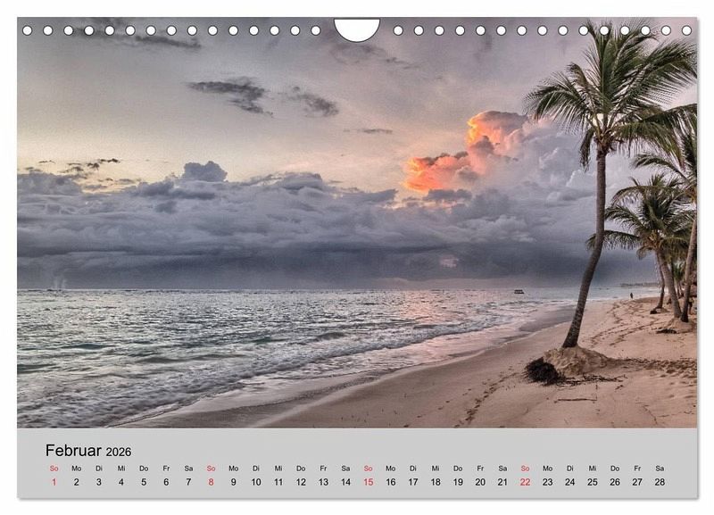 Februar: Palmenstrand in der Karibik