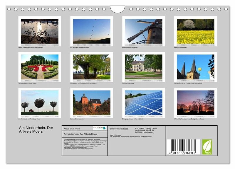 Der Fotograf hat im Altkreis Moers am Niederrhein, seiner Heimat, für diesen Kalender Fotos mit ausdrucksstarken Motiven zusammen gestellt. Er verzichtet bewusst auf romantisierende Landschaftsbilder. Wichtig sind dem Autor eine grafische Bildsprache und manchmal ungewohnte Blickwinkel.