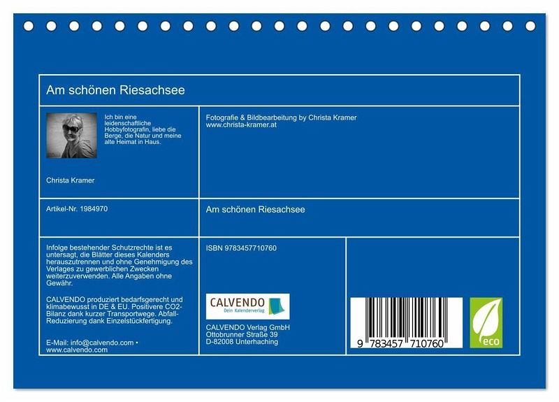 QUALITÄT - Hochwertiger Fotokalender mit 12 wunderschönen Motiven auf lichtbeständigem Bilderdruckpapier, robuste Spiralbindung.NACHHALTIG - deutliche Abfallreduzierung durch bedarfsgerechte Einzelstückfertigung, umweltfreundliches FSC-zertifiziertes Papier, Produktion in Deutschland, klimabewusste Logistik.PERFEKTES GESCHENK - Kalender für Freunde und Familie, für Kinder und Erwachsene, jung und alt, zu Weihnachten, Geburtstag oder zwischendurch.VIELFALT - Bildkalender in verschiedenen Formaten, z.B. DIN A5, DIN A4, DIN A3 sowie DIN A2. Ob Naturmotiv, Gemälde oder Fotos, ideal für ein persönliches Wohlfühlambiente.Impressionen vom Riesachsee in Rohrmoos-Untertal in Schladming von Autor(in): Christa Kramer