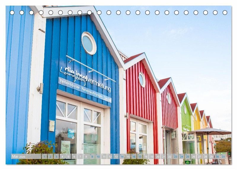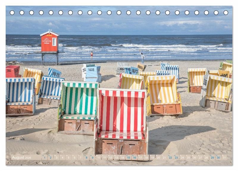 So vielfarbig wie Langeoog selbst sind die Bilder in diesem Kalender. Von den individuell kolorierten Waggons der Inselbahn bis zum kunterbunten Strand mit den verschiedenartigen Strandkörben und den Häuschen der Badeaufsicht, von denen natürlich jedes seine eigene Couleur hat. Der Strand ist sicherlich den vielen Fans der Insel am intensivsten im Gedächtnis und steht auch besonders im Fokus dieses Kalenders.