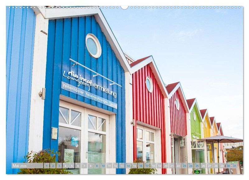 So vielfarbig wie Langeoog selbst sind die Bilder in diesem Kalender. Von den individuell kolorierten Waggons der Inselbahn bis zum kunterbunten Strand mit den verschiedenartigen Strandkörben und den Häuschen der Badeaufsicht, von denen natürlich jedes seine eigene Couleur hat. Der Strand ist sicherlich den vielen Fans der Insel am intensivsten im Gedächtnis und steht auch besonders im Fokus dieses Kalenders.