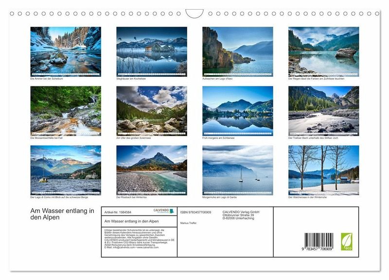 QUALITÄT - Hochwertiger Fotokalender mit 12 wunderschönen Motiven auf lichtbeständigem Bilderdruckpapier, robuste Spiralbindung mit Aufhängebügel.NACHHALTIG - deutliche Abfallreduzierung durch bedarfsgerechte Einzelstückfertigung, umweltfreundliches FSC-zertifiziertes Papier, Produktion in Deutschland, klimabewusste Logistik.PERFEKTES GESCHENK - Kalender für Freunde und Familie, für Kinder und Erwachsene, jung und alt,zu Weihnachten, Geburtstag oder zwischendurch.VIELFALT - Bildkalender in verschiedenen Formaten, z.B. DIN A5, DIN A4, DIN A3 sowie DIN A2. Ob Naturmotiv, Gemälde oder Fotos, ideal für ein persönliches Wohlfühlambiente.Seen, Flüsse und Bachläufe sind ein wesentlicher Bestandteil und Anziehungspunkt der Alpen. von Autor(in): Markus Treffer