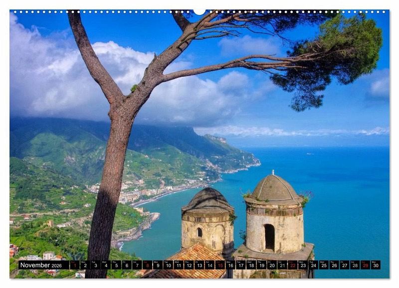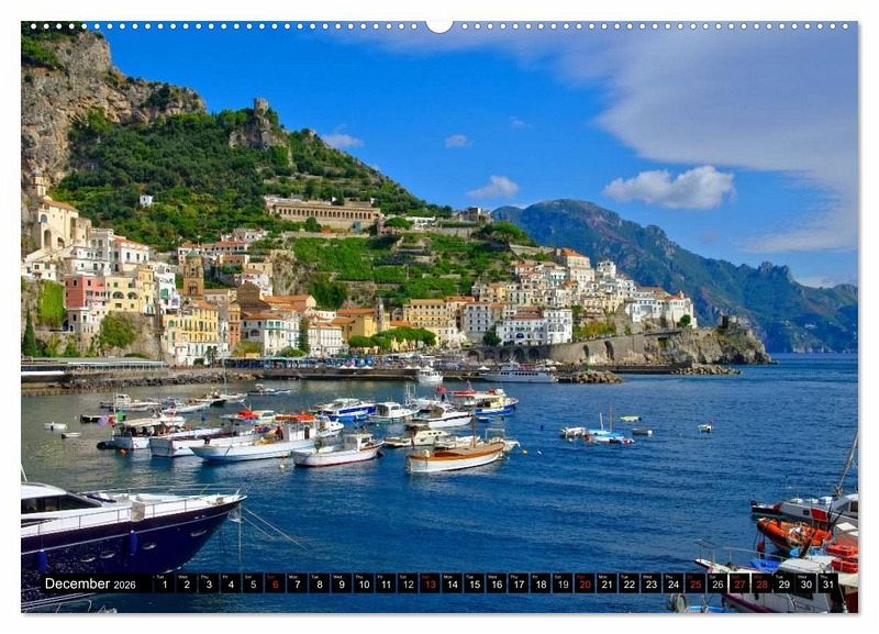 The calendar shows one of Italy's finest scenery - the Amalfi coast and the Region Campania. Discover ancient towns like Salerno and Amalfi an wonderful coastline.