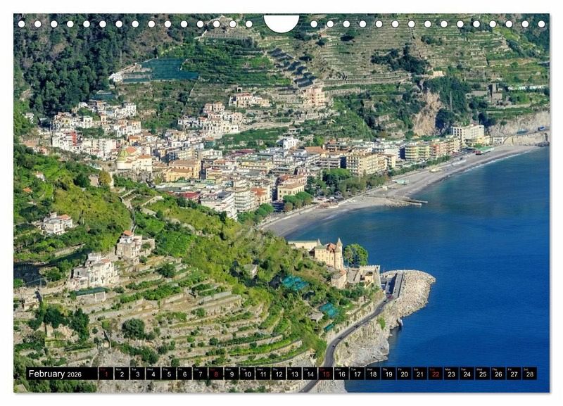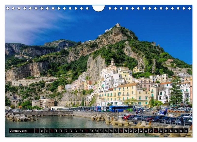 The calendar shows one of Italy's finest scenery - the Amalfi coast and the Region Campania. Discover ancient towns like Salerno and Amalfi an wonderful coastline.