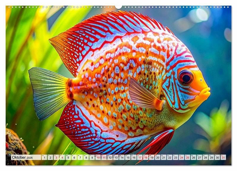 Oktober: Ein einzelner Diskusfisch in intensiven Farben