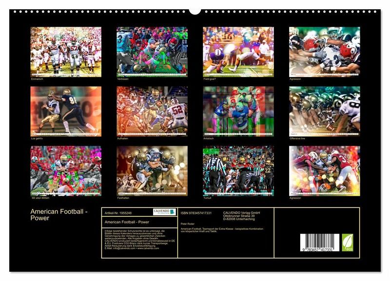 PREMIUM-LINIE - Brillanter Fotokalender mit 12 wunderschönen Motiven, Kunstdruck in Hochglanz in Museumsqualität.QUALITÄT - edle Materialien, stabile Rückwand mit 2 innovativen Einstecktaschen für eine optimale Präsentation an der Wand.NACHHALTIG - deutliche Abfallreduzierung durch bedarfsgerechte Einzelstückfertigung, umweltfreundliches FSC-zertifiziertes Papier, Produktion in Deutschland, klimabewusste Logistik.PERFEKTES GESCHENK - Kalender für Freunde und Familie, für Kinder und Erwachsene, jung und alt, zu Weihnachten, Geburtstag oder zwischendurch.American Football, Teamsport der Extra-Klasse - beispiellose Kombination von körperlicher Kraft und Taktik. von Autor(in): Peter Roder
