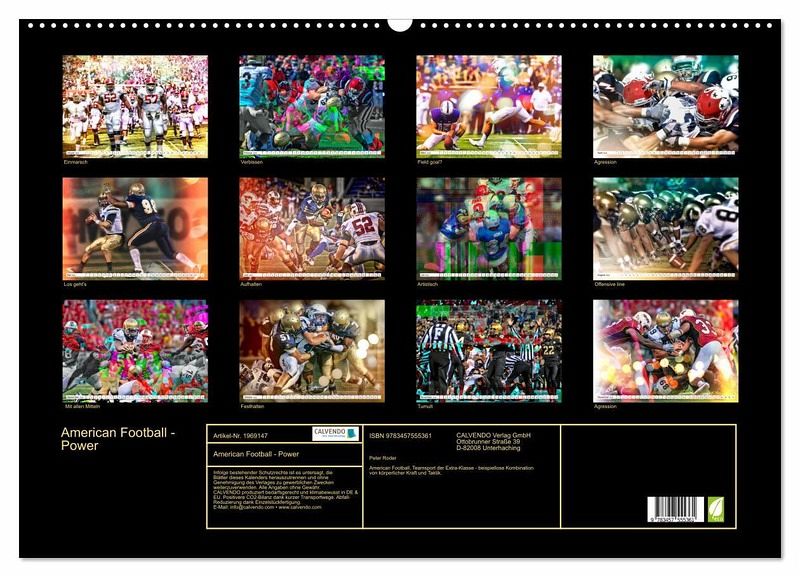 QUALITÄT - Hochwertiger Fotokalender mit 12 wunderschönen Motiven auf lichtbeständigem Bilderdruckpapier, robuste Spiralbindung mit Aufhängebügel.NACHHALTIG - deutliche Abfallreduzierung durch bedarfsgerechte Einzelstückfertigung, umweltfreundliches FSC-zertifiziertes Papier, Produktion in Deutschland, klimabewusste Logistik.PERFEKTES GESCHENK - Kalender für Freunde und Familie, für Kinder und Erwachsene, jung und alt, zu Weihnachten, Geburtstag oder zwischendurch.VIELFALT - Bildkalender in verschiedenen Formaten, z.B. DIN A5, DIN A4, DIN A3 sowie DIN A2. Ob Naturmotiv, Gemälde oder Fotos, ideal für ein persönliches Wohlfühlambiente.American Football, Teamsport der Extra-Klasse - beispiellose Kombination von körperlicher Kraft und Taktik. von Autor(in): Peter Roder