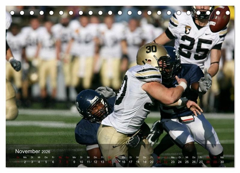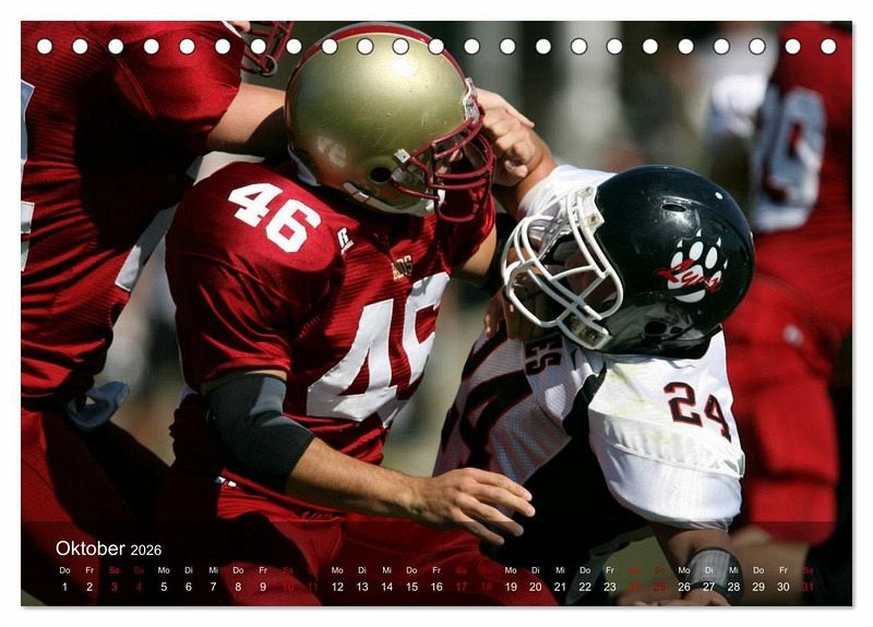 Das dynamische Mannschaftsspiel, welches mit viel Strategie und Taktik geführt wird, begeistert in Amerika Jung und Alt. Der außergewöhnliche Kalender zeigt dynamische Spielszenen vom Kickoff bis zum Touchdown. Ein teamneutraler Footballkalender, der Fans des American Footballs bestimmt Freude bereitet.