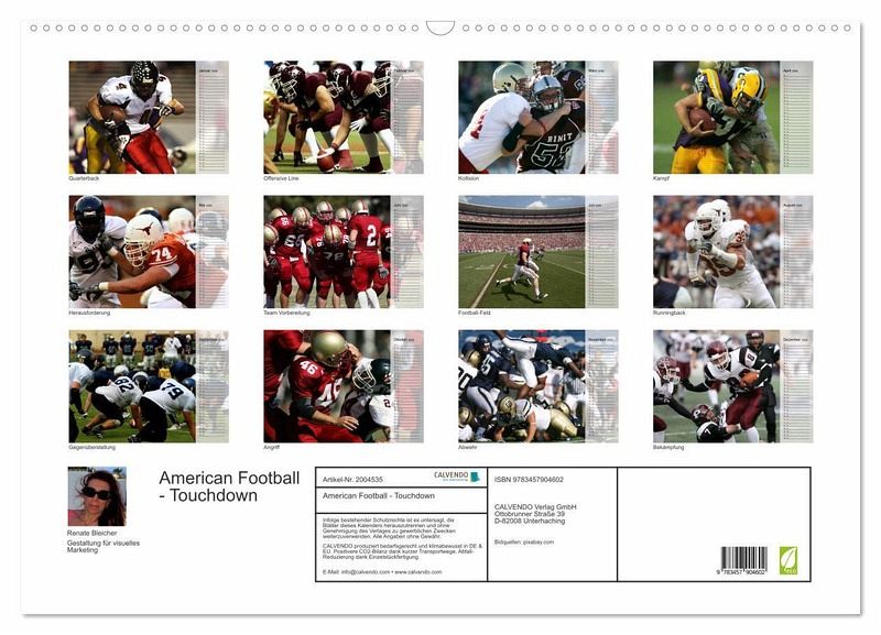 QUALITÄT - Hochwertiger Fotokalender mit 12 wunderschönen Motiven auf lichtbeständigem Bilderdruckpapier, robuste Spiralbindung mit Aufhängebügel.NACHHALTIG - deutliche Abfallreduzierung durch bedarfsgerechte Einzelstückfertigung, umweltfreundliches FSC-zertifiziertes Papier, Produktion in Deutschland, klimabewusste Logistik.PERFEKTES GESCHENK - Kalender für Freunde und Familie, für Kinder und Erwachsene, jung und alt, zu Weihnachten, Geburtstag oder zwischendurch.VIELFALT - Bildkalender in verschiedenen Formaten, z.B. DIN A5, DIN A4, DIN A3 sowie DIN A2. Ob Naturmotiv, Gemälde oder Fotos, ideal für ein persönliches Wohlfühlambiente.Packende Actionszenen aus der Welt des American Football von Autor(in): Renate Bleicher