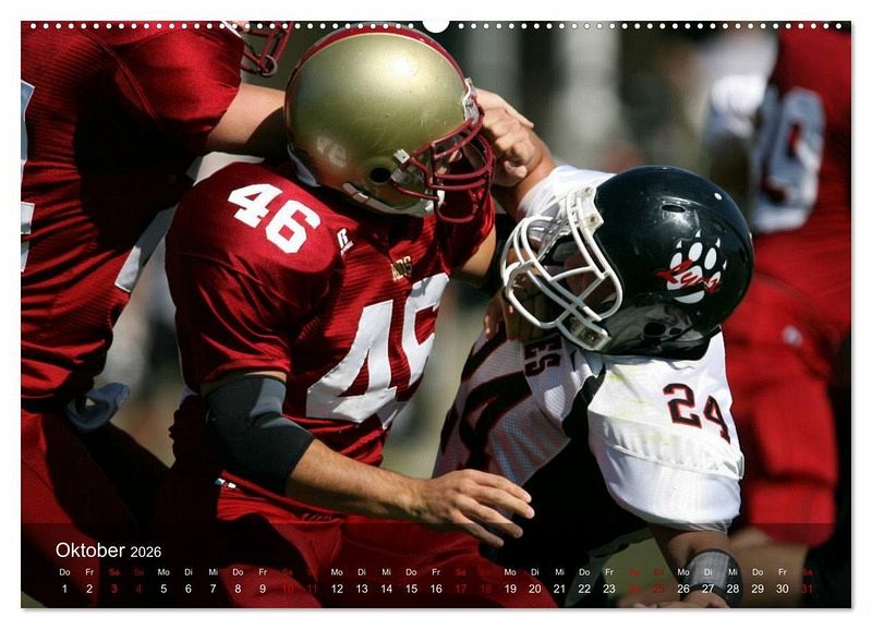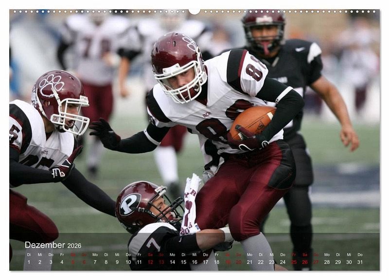 American Football ist in den USA die Sportart Nr. 1. Das dynamische Mannschaftsspiel, welches mit viel Strategie und Taktik geführt wird, begeistert in Amerika Jung und Alt. Der außergewöhnliche Kalender zeigt dynamische Spielszenen vom Kickoff bis zum Touchdown. Ein teamneutraler Footballkalender, der Fans des American Footballs bestimmt Freude bereitet.