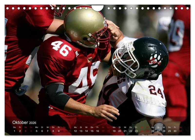Das dynamische Mannschaftsspiel, welches mit viel Strategie und Taktik geführt wird, begeistert in Amerika Jung und Alt. Der außergewöhnliche Kalender zeigt dynamische Spielszenen vom Kickoff bis zum Touchdown. Ein teamneutraler Footballkalender, der Fans des American Footballs bestimmt Freude bereitet.
