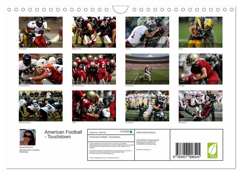QUALITÄT - Hochwertiger Fotokalender mit 12 wunderschönen Motiven auf lichtbeständigem Bilderdruckpapier, robuste Spiralbindung mit Aufhängebügel.NACHHALTIG - deutliche Abfallreduzierung durch bedarfsgerechte Einzelstückfertigung, umweltfreundliches FSC-zertifiziertes Papier, Produktion in Deutschland, klimabewusste Logistik.PERFEKTES GESCHENK - Kalender für Freunde und Familie, für Kinder und Erwachsene, jung und alt, zu Weihnachten, Geburtstag oder zwischendurch.VIELFALT - Bildkalender in verschiedenen Formaten, z.B. DIN A5, DIN A4, DIN A3 sowie DIN A2. Ob Naturmotiv, Gemälde oder Fotos, ideal für ein persönliches Wohlfühlambiente.Packende Actionszenen aus der Welt des American Football von Autor(in): Renate Bleicher