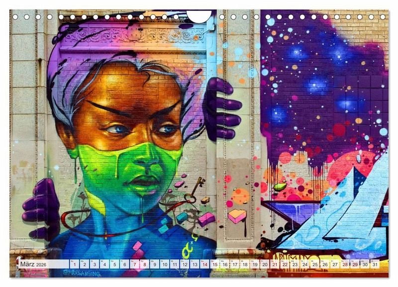 Kreativität und Lebensgefühl: Farbenfrohe, raumgreifende Wandmalereien prägen den öffentlichen Raum in den Szenevierteln US-amerikanischer Großstädte. Ein schier unerschöpfliches kreatives Potential wird für jedermann sichtbar. Ein Kalender mit eindrucksvollen Street Art Kunstwerken.