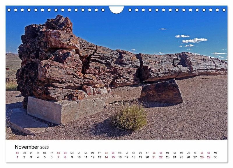 November: Versteinerter Baumstamm im Petrified-Forest-Nationalpark, Arizona