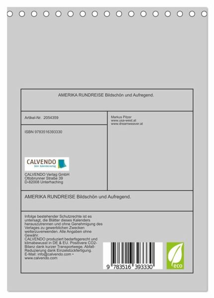 QUALITÄT - Hochwertiger Fotokalender mit 12 wunderschönen Motiven auf lichtbeständigem Bilderdruckpapier, robuste Spiralbindung.NACHHALTIG - deutliche Abfallreduzierung durch bedarfsgerechte Einzelstückfertigung, umweltfreundliches FSC-zertifiziertes Papier,Produktion in Deutschland, klimabewusste Logistik.PERFEKTES GESCHENK - Kalender für Freunde und Familie, für Kinder und Erwachsene, jung und alt, zu Weihnachten, Geburtstag oder zwischendurch.VIELFALT - Bildkalender in verschiedenen Formaten, z.B. DIN A5, DIN A4, DIN A3 sowie DIN A2. Ob Naturmotiv, Gemälde oder Fotos, ideal für ein persönliches Wohlfühlambiente.Hier geht es um ein besonderes Lebensgefühl, Freiheit und faszinierende Landschaften in den USA. von Autor(in): Markus Pitzer