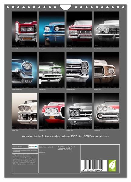 QUALITÄT - Hochwertiger Fotokalender mit 12 wunderschönen Motiven auf lichtbeständigem Bilderdruckpapier, robuste Spiralbindung mit Aufhängebügel.NACHHALTIG - deutliche Abfallreduzierung durch bedarfsgerechte Einzelstückfertigung, umweltfreundliches FSC-zertifiziertes Papier, Produktion in Deutschland, klimabewusste Logistik.PERFEKTES GESCHENK - Kalender für Freunde und Familie, für Kinder und Erwachsene, jung und alt, zu Weihnachten, Geburtstag oder zwischendurch.VIELFALT - Bildkalender in verschiedenen Formaten, z.B. DIN A5, DIN A4, DIN A3 sowie DIN A2. Ob Naturmotiv, Gemälde oder Fotos, ideal für ein persönliches Wohlfühlambiente.Freuen Sie sich auf tolle US Automobile der 1950er, 1960er und 1970er Jahre. von Autor(in): Beate Gube