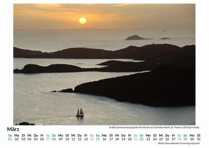 Entdecken Sie das Paradies der Amerikanischen Jungferninseln in Ihrem Zuhause! Dieser exklusive Wandkalender entführt Sie Monat für Monat an traumhafte Strände, in üppige Natur und zu faszinierenden Küstenlandschaften. Die 12 sorgfältig ausgewählten Motive auf hochwertigem, lichtbeständigem Bilderdruckpapier lassen Sie das ganze Jahr über von Ihrem nächsten Urlaub träumen. Gedruckt in Deutschland auf FSC-zertifiziertem Papier, vereint dieser Kalender Nachhaltigkeit und atemberaubende Fotografie. Perfekt als Geschenk oder für die eigene Wand - holen Sie sich ein Stück Karibik in Ihr Zuhause! Jetzt bestellen und das ganze Jahr Urlaubsfeeling genießen! Hochwertig Erleben Sie ein Jahr voller Eleganz mit unserem Premium-Fotokalender. Jedes der 12 Motive ist auf hochwertigem, lichtbeständigem Bilderdruckpapier gedruckt, um die Lebendigkeit jedes Bildes zu bewahren. Die robuste Spiralbindung gewährleistet Langlebigkeit und einfache Handhabung. Nachhaltig Unser Engagement für die Umwelt spiegelt sich in jedem Exemplar wider. Durch die Produktion auf Abruf reduzieren wir signifikant unseren Abfall. Wir verwenden ausschließlich umweltfreundliches, FSC-zertifiziertes Papier. Stolz gefertigt in Deutschland, achten wir bei unserer Logistik auf Klimaschutz, um unseren ökologischen Fußabdruck zu minimieren. Das ideale Geschenk Dieser Kalender ist das perfekte Präsent für jeden Anlass - ob Weihnachten, Geburtstage oder einfach als liebevolle Aufmerksamkeit zwischendurch. Geeignet für Freunde, Familie, Kinder und Erwachsene gleichermaßen, bereichert er jedes Zuhause mit seiner Vielfalt und Schönheit, unabhängig vom Alter der Beschenkten.