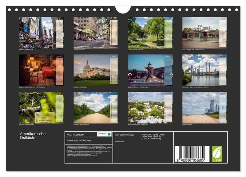 Dieser Kalender zeigt Ihnen Fotos die entlang der Ostküste entstanden sind. Von der belebten Stadt New York bis zur Sonnenstadt Miami werden hier Ihnen die 12 schönsten Bilder gezeigt.