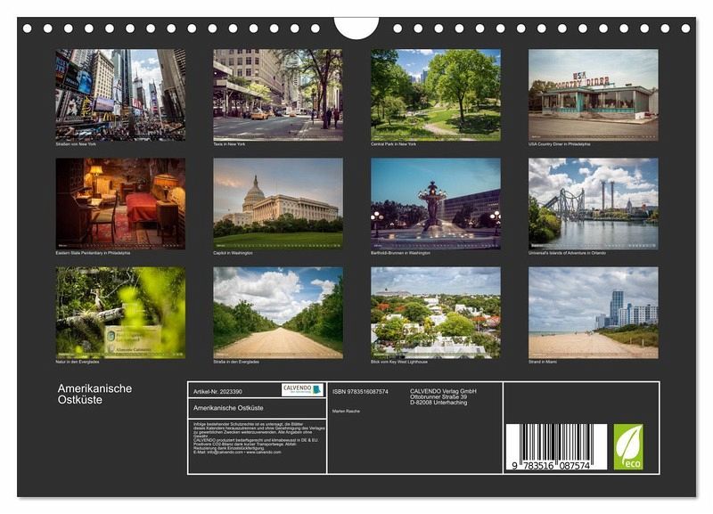 Dieser Kalender zeigt Ihnen Fotos die entlang der Ostküste entstanden sind. Von der belebten Stadt New York bis zur Sonnenstadt Miami werden Ihnen hier die 12 schönsten Bilder gezeigt.