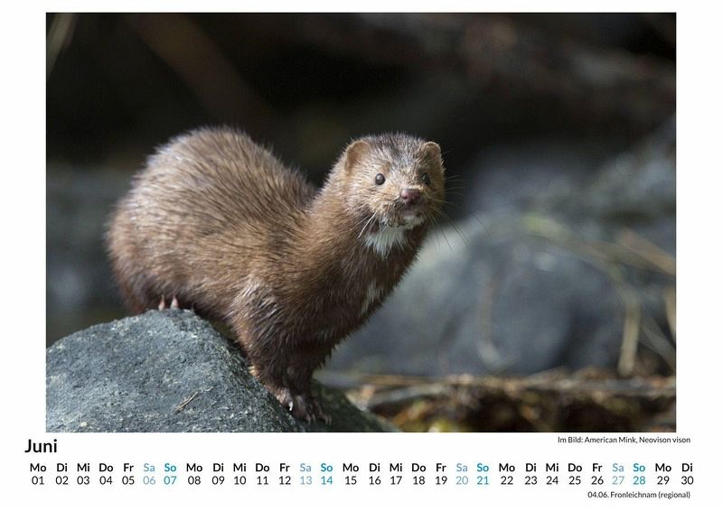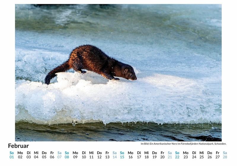 Entdecken Sie die faszinierende Welt des Amerikanischen Nerzes mit unserem hochwertigen Wandkalender! Dieser elegante Vertreter der Marderfamilie wird in 12 atemberaubenden Motiven perfekt in Szene gesetzt. Jedes Bild fängt die Schönheit und Anmut dieses faszinierenden Tieres in seiner natürlichen Umgebung ein. Gedruckt auf lichtbeständigem, FSC-zertifiziertem Bilderdruckpapier, garantiert dieser Kalender nicht nur brillante Farben, sondern auch Nachhaltigkeit. Hergestellt in Deutschland, ist er ein echter Hingucker für Natur- und Tierliebhaber. Holen Sie sich ein Stück Wildnis nach Hause und lassen Sie sich Monat für Monat von der Schönheit des Amerikanischen Nerzes verzaubern! Hochwertig Erleben Sie ein Jahr voller Eleganz mit unserem Premium-Fotokalender. Jedes der 12 Motive ist auf hochwertigem, lichtbeständigem Bilderdruckpapier gedruckt, um die Lebendigkeit jedes Bildes zu bewahren. Die robuste Spiralbindung gewährleistet Langlebigkeit und einfache Handhabung. Nachhaltig Unser Engagement für die Umwelt spiegelt sich in jedem Exemplar wider. Durch die Produktion auf Abruf reduzieren wir signifikant unseren Abfall. Wir verwenden ausschließlich umweltfreundliches, FSC-zertifiziertes Papier. Stolz gefertigt in Deutschland, achten wir bei unserer Logistik auf Klimaschutz, um unseren ökologischen Fußabdruck zu minimieren. Das ideale Geschenk Dieser Kalender ist das perfekte Präsent für jeden Anlass - ob Weihnachten, Geburtstage oder einfach als liebevolle Aufmerksamkeit zwischendurch. Geeignet für Freunde, Familie, Kinder und Erwachsene gleichermaßen, bereichert er jedes Zuhause mit seiner Vielfalt und Schönheit, unabhängig vom Alter der Beschenkten.