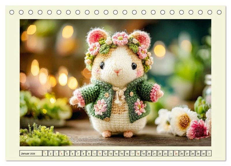 Tauche ein in die zarte Welt der Amigurumi - zwölf niedliche Tierchen begleiten dich durchs Jahr, jedes mit seinem ganz eigenen Charme. Die realistisch inszenierten, weich gehäkelten Freunde bringen Wärme und Freude in jeden Raum. Sanfte Farben und liebevolle Details machen diesen Kalender zu einem echten Blickfang - ideal zum Verschenken oder Selbstbehalten. Alle Bilder wurden mit der Hilfe von KI erstellt und zeigen Häckelkunst die Herzen schmelzen lässt und jeden Monat ein kleines Lächeln schenken.