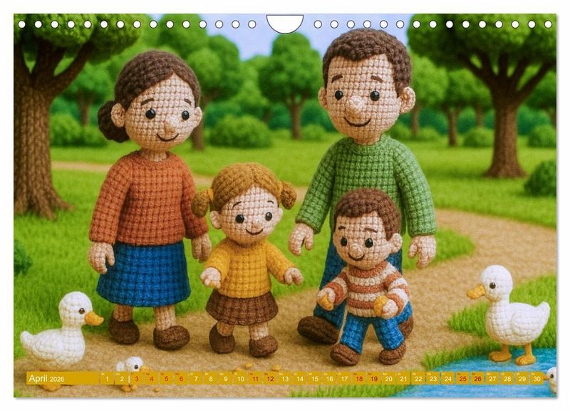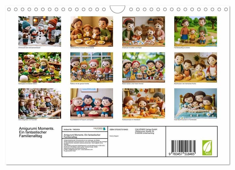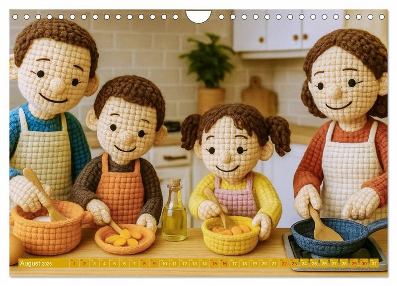 Willkommen im Alltag einer Amigurumi-Familie - liebevoll inszeniert mit KI. Monat für Monat zeigen charmante Szenen, wie bunt, witzig und warmherzig Familienleben sein kann. Ob beim Frühstück, im Garten, beim Musikmachen oder beim Kuscheln - jedes Bild erzählt auf seine eigene Art vom Zauber der kleinen Momente. Wichtig: Enthält keine Häkelanleitungen.