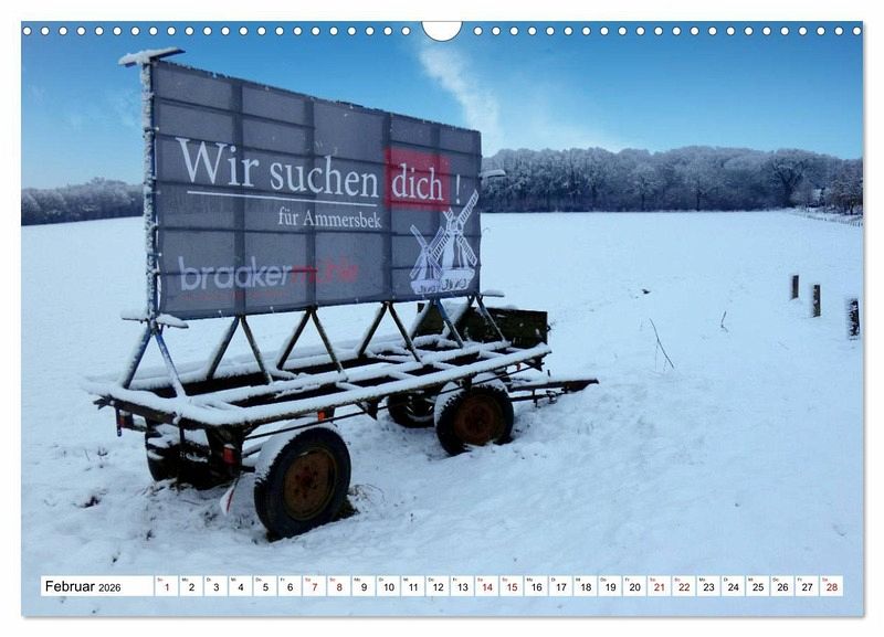 Februar: Alter Ackerwagen am Ortsausgang von Hoisbüttel