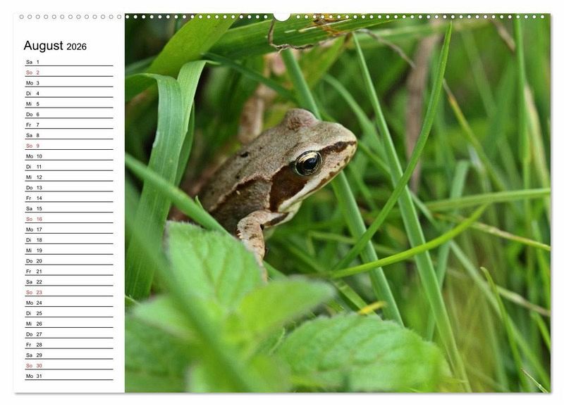Der Kalender zeigt verschiedene Amphibien- und Reptilienarten auf 13 ungewöhnlichen Makroaufnahmen, alle aufgenommen in ihrem natürlichen Lebensraum in Hessen.