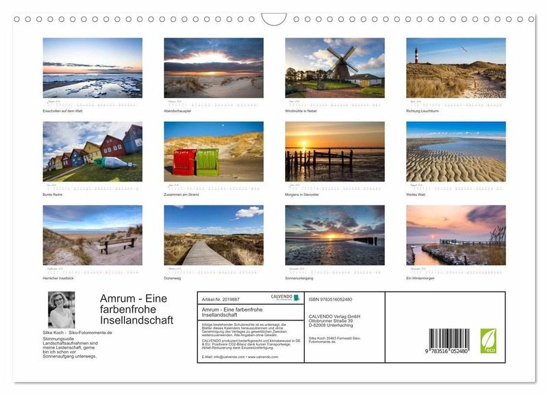 QUALITÄT - Hochwertiger Fotokalender mit 12 wunderschönen Motiven auf lichtbeständigem Bilderdruckpapier, robuste Spiralbindung mit Aufhängebügel.NACHHALTIG - deutliche Abfallreduzierung durch bedarfsgerechte Einzelstückfertigung, umweltfreundliches FSC-zertifiziertes Papier, Produktion in Deutschland, klimabewusste Logistik.PERFEKTES GESCHENK - Kalender für Freunde und Familie, für Kinder und Erwachsene, jung und alt, zu Weihnachten, Geburtstag oder zwischendurch.VIELFALT - Bildkalender in verschiedenen Formaten, z.B. DIN A5, DIN A4, DIN A3 sowie DIN A2. Ob Naturmotiv, Gemälde oder Fotos, ideal für ein persönliches Wohlfühlambiente.Stimmungsvolle farbenfrohe Landschaftsaufnahmen von Amrum von Autor(in): Silke Koch