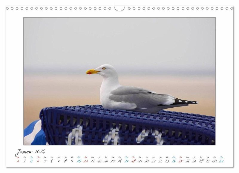 Januar: Eine Silbermöwe auf einem Strandkorb