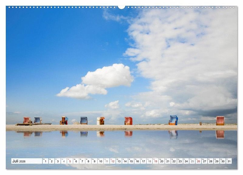 Juli: Strandkörbe im Spiegelbild bei Flut